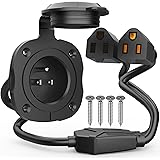 PAULINN 15 Amp 125V AC Power Inlet Port Plug W/Integrated Dual 18" Extension Cord, NEMA 5-15 RV Flanged Inlet Y Splitter Cable with Waterproof & Back Cover, 2 Pole 3-Wire Shore Power Plug for Boat